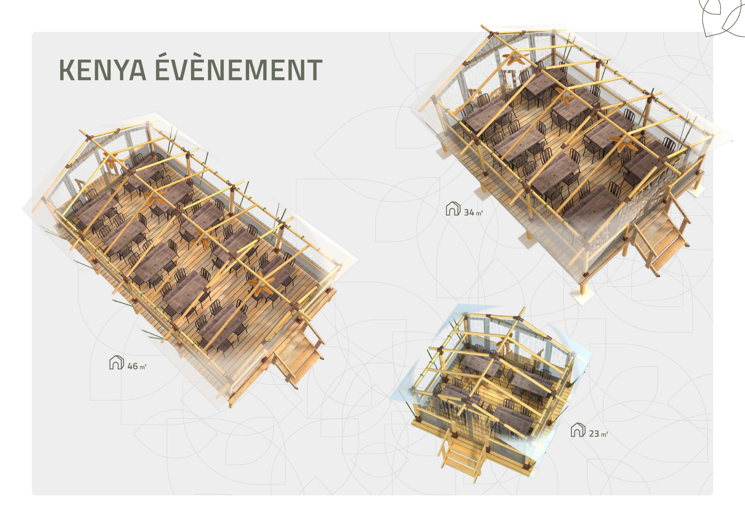 Décliné de sa version lodge, le KENYA ÉVÈNEMENT vous permettra d’avoir un espace idéal et glamping pour des jeux, des soirées ou effectuer une zone de restauration qui enchantera vos convives.